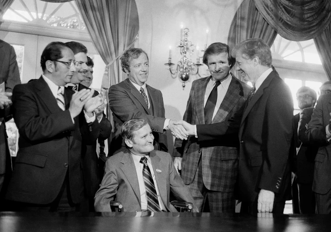 The native of Flint, Michigan, was first elected to the U.S. House of Representatives as a Republican in 1966 at age 28. As a congressman, he challenged President Richard Nixon’s policies on the Vietnam War and crossed the aisle to join the Democratic Party in 1973. Three years later, he was elected to the U.S. Senate, where he served until 1994.