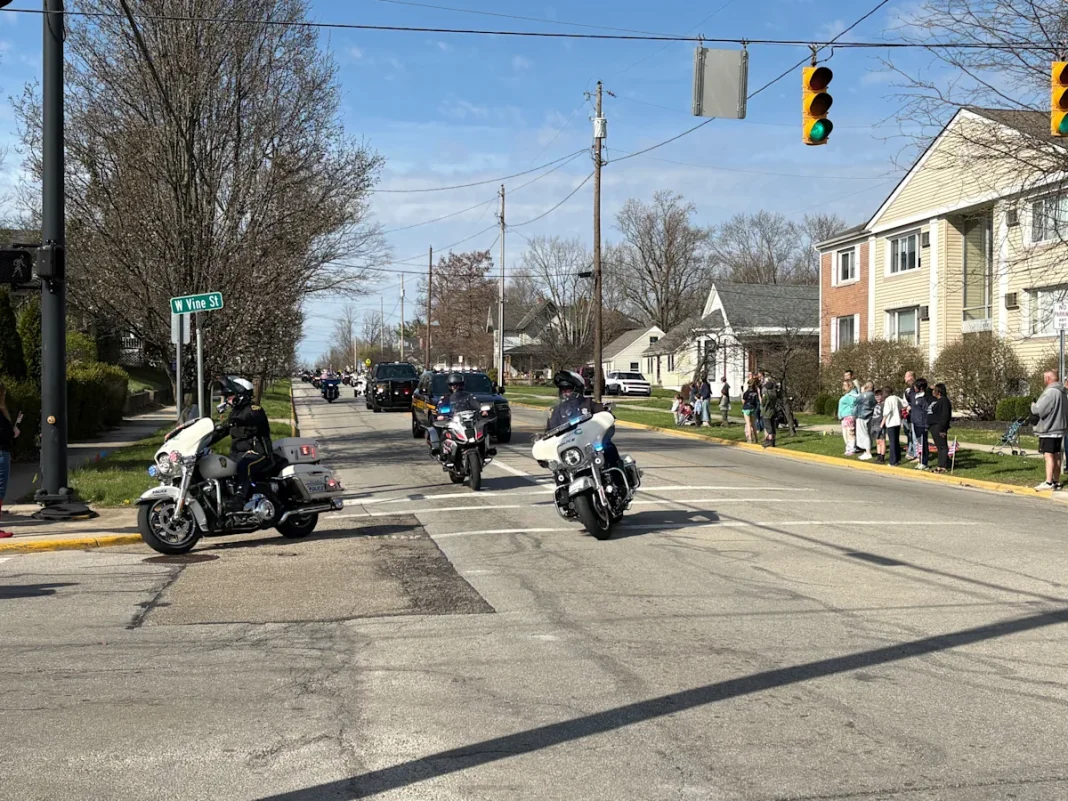 The procession ended at the Edgington Funeral Home to allow family and close friends to pay their respects.