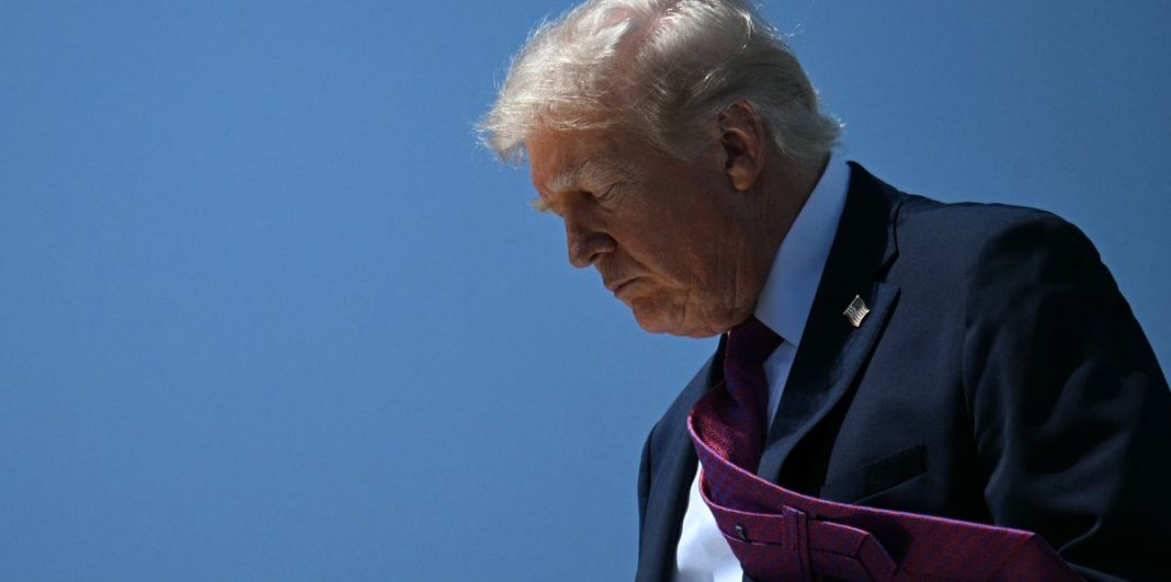 President Donald Trump steps off of Air Force One upon arrival at Phoenix Sky Harbor International Airport in Phoenix, Arizona, on April 17, 2026. (Photo by Jim WATSON / AFP via Getty Images) JIM WATSON via Getty Images